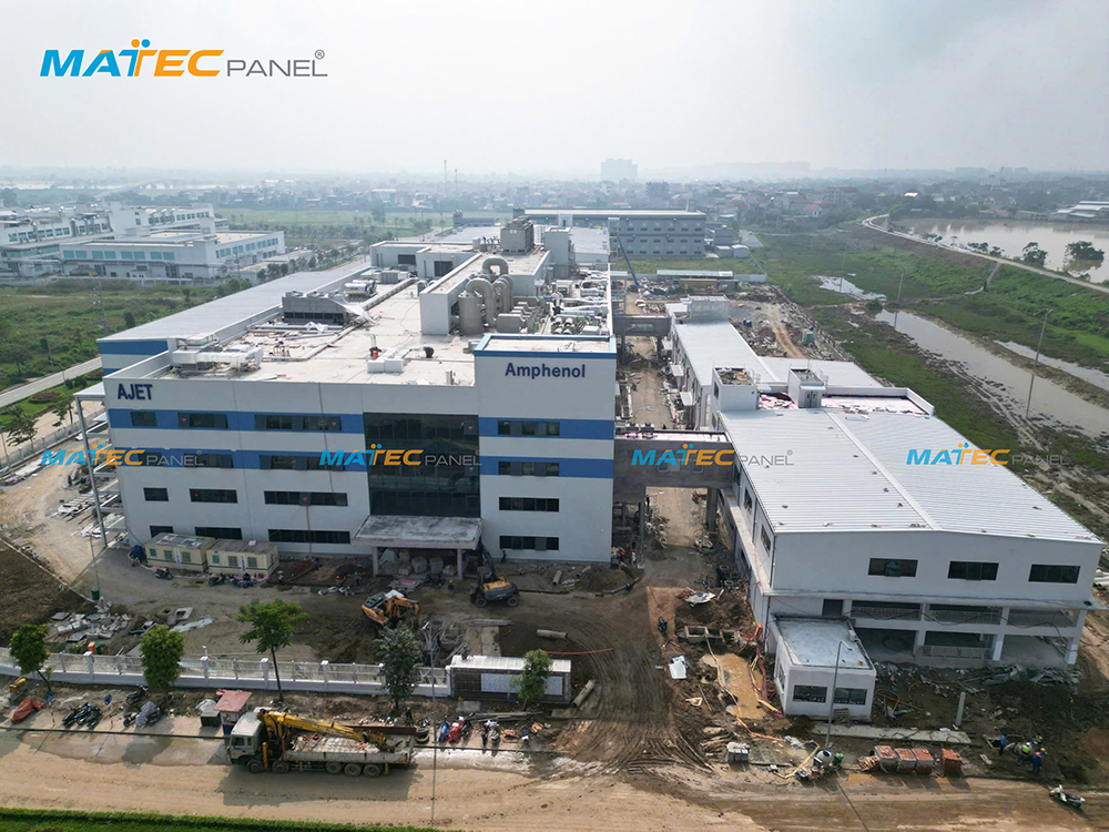 Dự án Nhà máy Amphenol đang bước vào giai đoạn hoàn thiện cuối cùng, các hạng mục lắp đặt panel nhà xưởng, panel cách nhiệt cho vách – trần – khu sản xuất đã được MatecPanel cung cấp và bàn giao đúng tiến độ, đạt yêu cầu kỹ thuật của chủ đầu tư.
