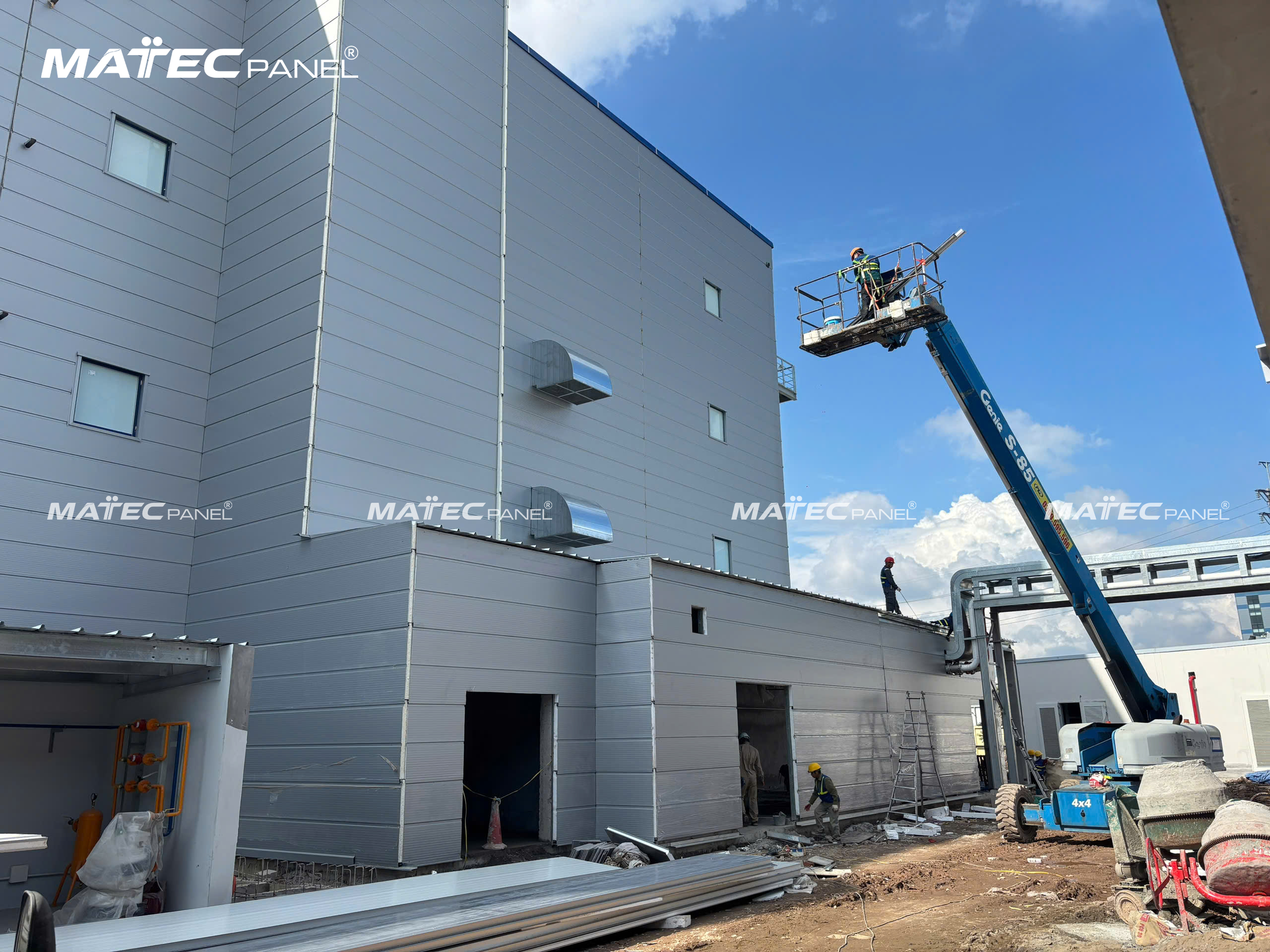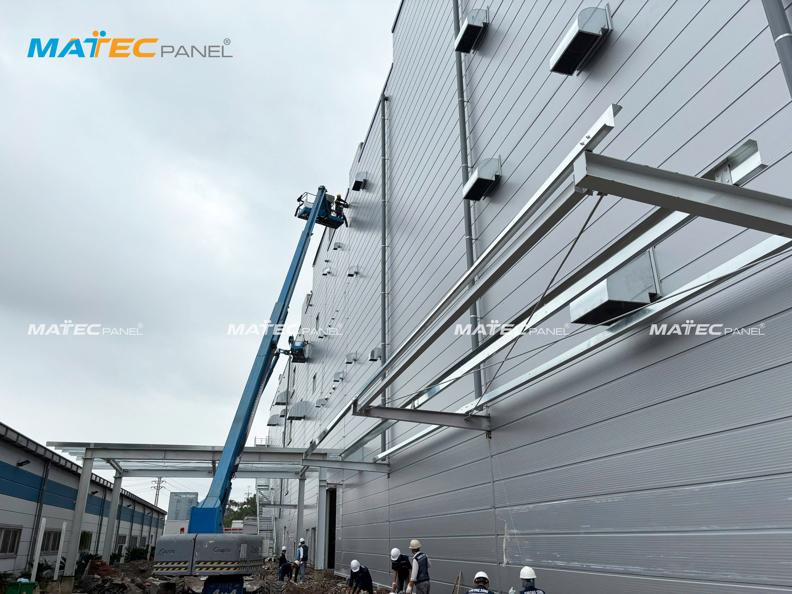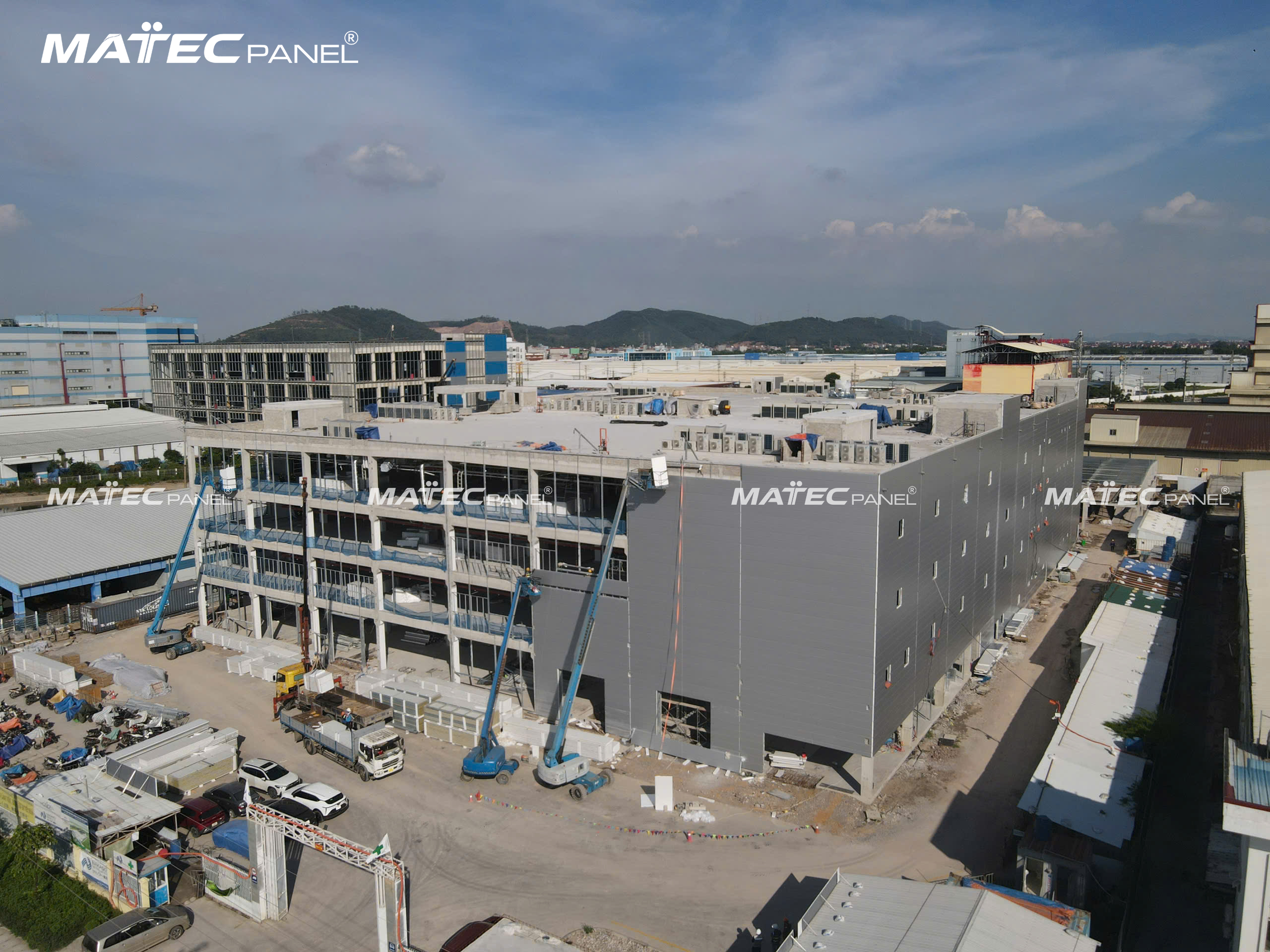 Trong suốt quá trình triển khai, MatecPanel luôn đồng hành cùng nhà thầu để kiểm soát chất lượng từng hạng mục, giao vật tư đúng tiến độ và hỗ trợ kỹ thuật trực tiếp tại hiện trường. Nhờ đó, các hạng mục panel được lắp dựng nhanh chóng, đảm bảo tiêu chuẩn của công trình công nghiệp quy mô lớn.